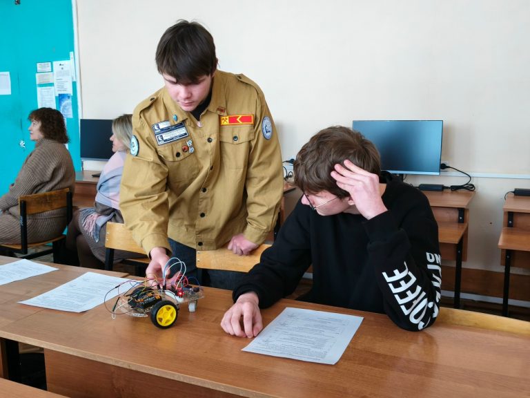 Здесь ребят ждал настоящий сюрприз — демонстрация роботов, созданных студентами колледжа. Школьники с интересом наблюдали за работой механизмов, задавали вопросы о программировании и конструировании, а некоторые даже попробовали управлять роботами.