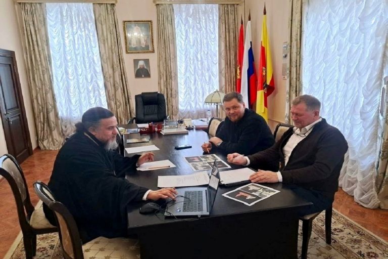 В Епархиальном управлении состоялась рабочая встреча епископа Ржевского и Торопецкого Силуана с главой Ржевского муниципального округа Романом Крыловым и руководителем Музея истории архитектуры города Ржева (МИАР) Игорем Сафроновым.