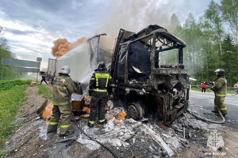 Грузовой автомобиль горел на М-9 в Ржевском округе