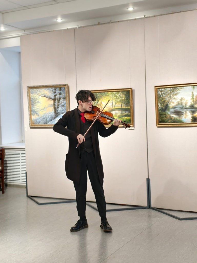 Музыкальным приветствием гостей встретил скрипач Максим Булискерия, дополнив живописную палитру красками музыки.