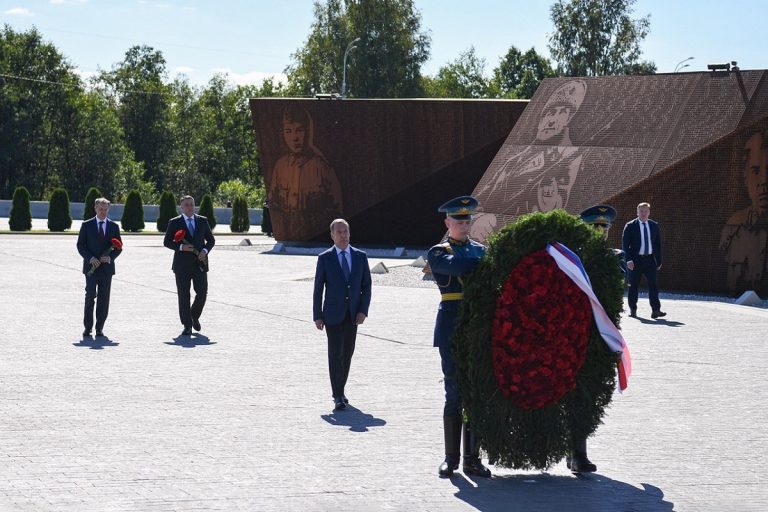 Председатель партии «Единая Россия», заместитель Председателя Совета Безопасности РФ Дмитрий Медведев и губернатор Игорь Руденя на Ржевском мемориале Советскому солдату почтили память павших воинов