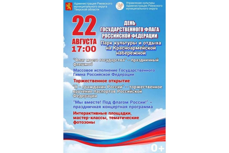 Приглашаем всех жителей и гостей Ржевского муниципального округа на празднование Дня флага Российской Федерации!