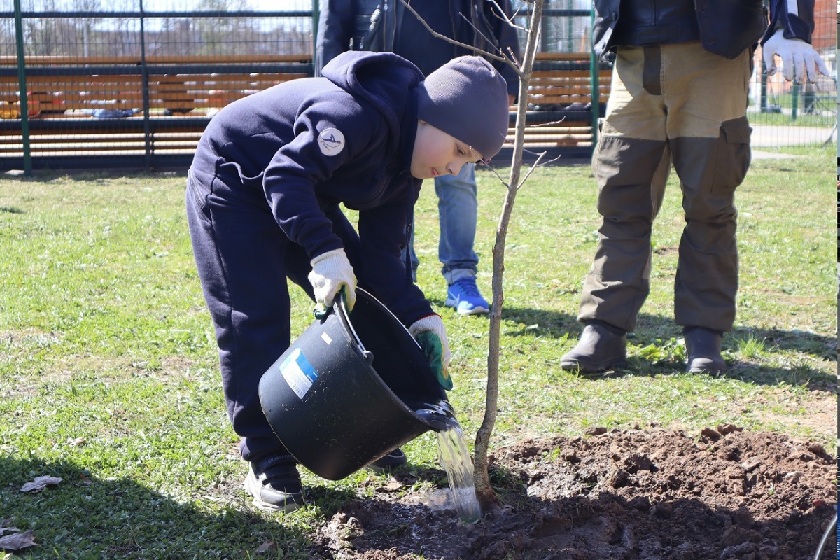 Продолжается также озеленение территории. Всего этой весной высажено более 400 саженцев. Начали с молодых дубков в парке на улице Мира.