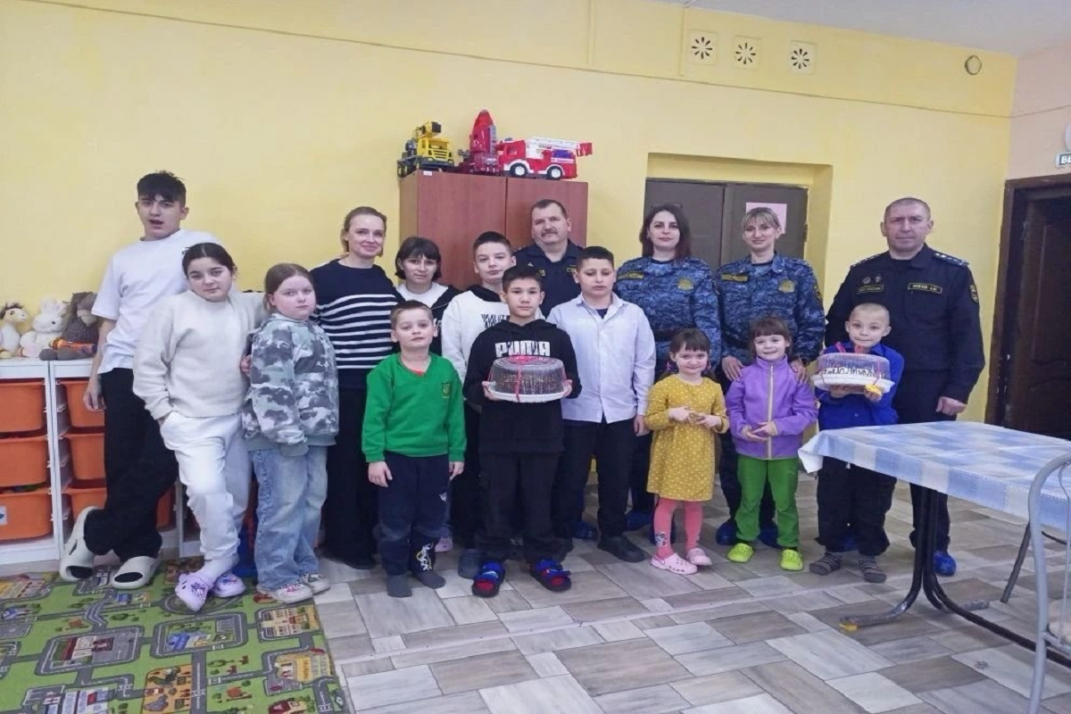 Сотрудники службы принесли с собой настоящий праздник, который особенно пришелся по вкусу детям – большие, красивые торты. Этот сладкий подарок принес много радости и улыбок, создав по-настоящему торжественную и уютную атмосферу в центре.