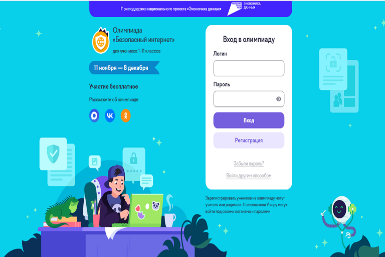 Всероссийская онлайн-олимпиада «Безопасный интернет» продлится до 8 декабря. Для участия в ней необходимо зарегистрироваться на сайте https://safenet.uchi.ru/ или войти под логином и паролем от Учи.ру. Все участники получат сертификаты, грамоты или дипломы в зависимости от результата, а учителя – благодарственные письма.