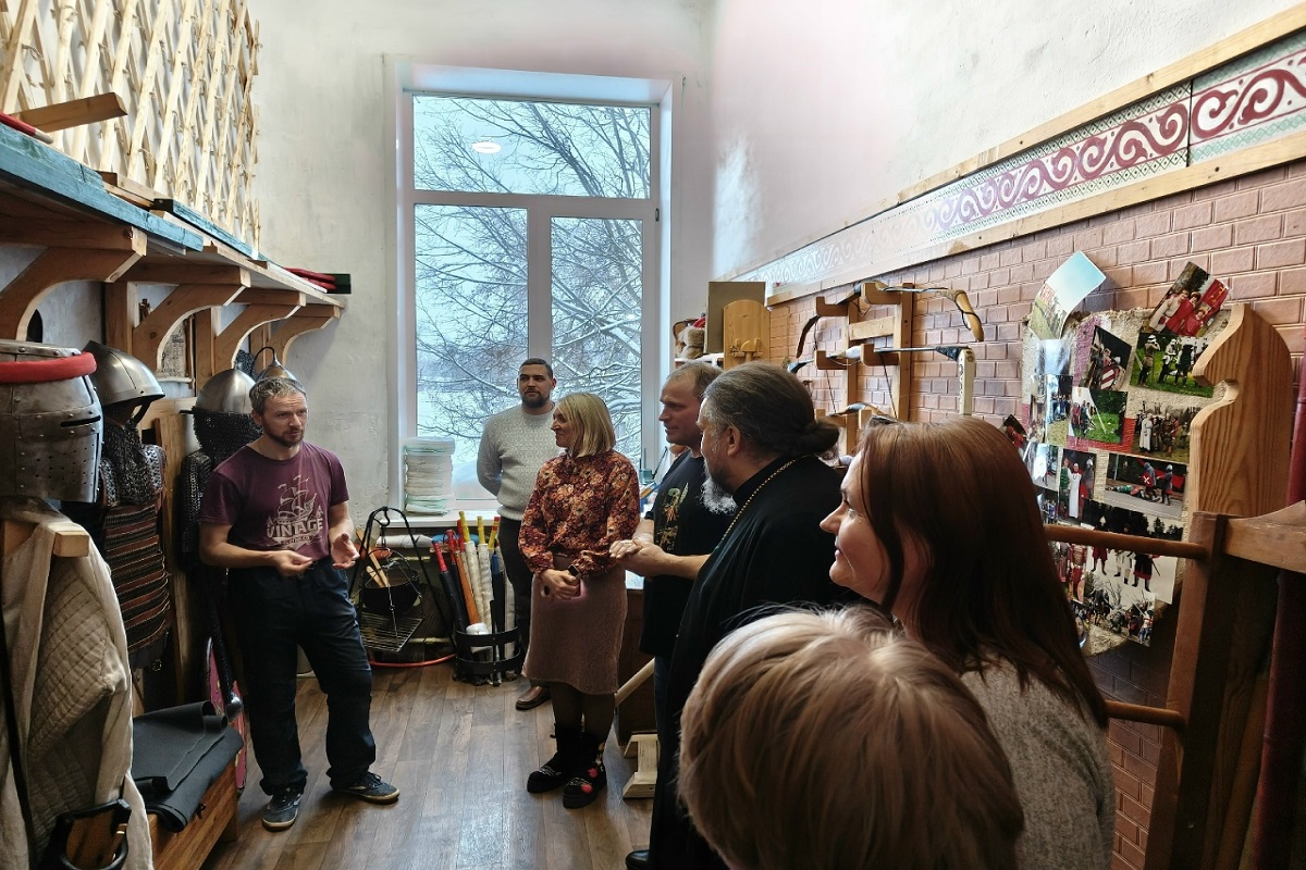 Также владыка Силуан познакомился с работой клуба исторической реконструкции «Время Александра Невского» под руководством Дениса Леонова, действующего на базе МУ ЦКИ «Текстильщик».