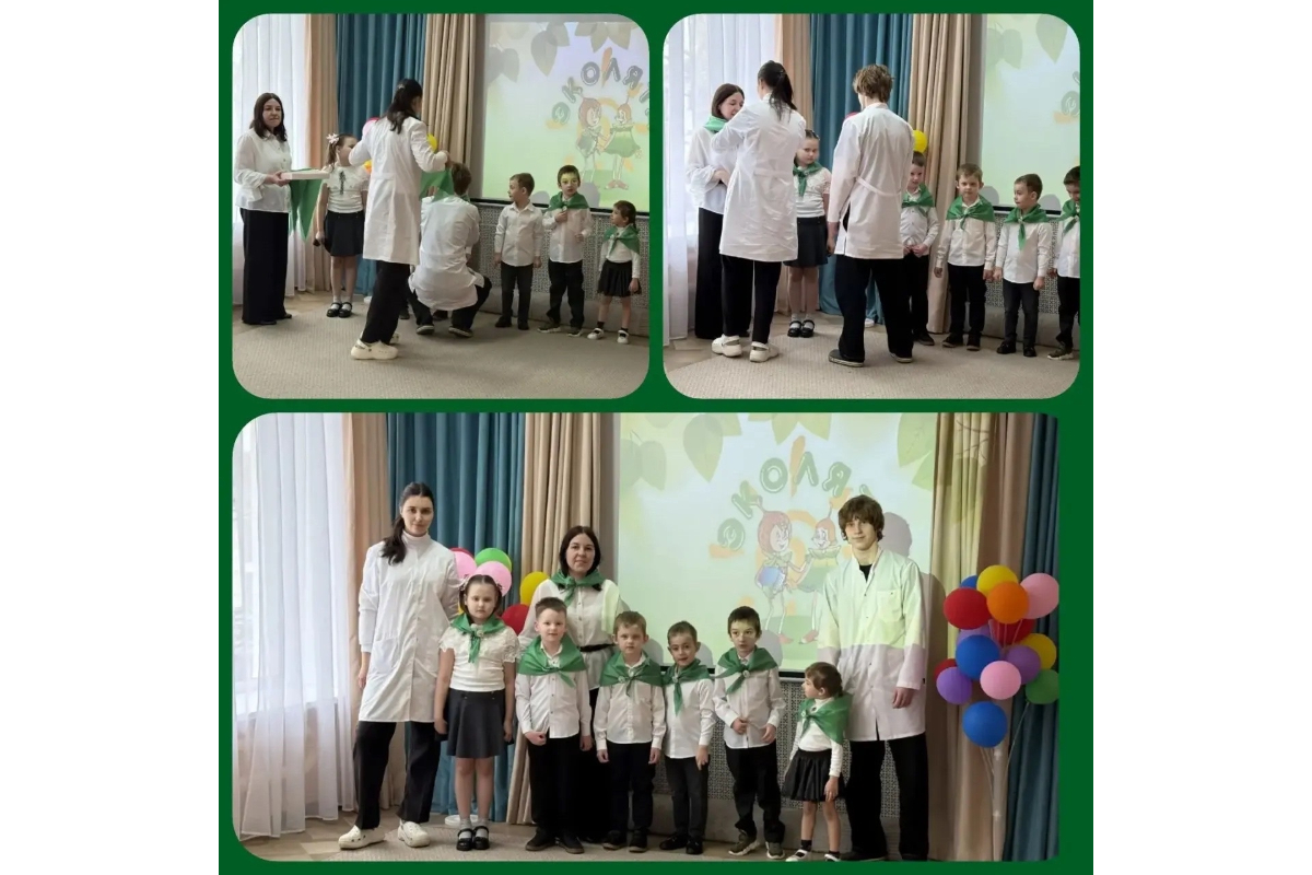 Гости праздника — студенты ГБПОУ «Ржевский медицинский колледж» — каждому юному эколёнку повязали яркий зелёный галстук и прикрепили памятный значок.