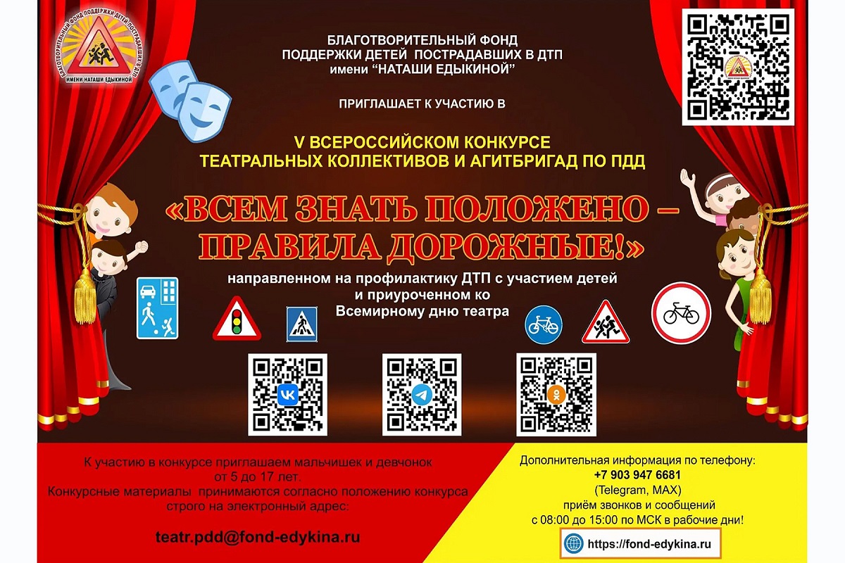 Любители литературы могут прислать материалы на VI всероссийский конкурс чтецов стихов по ПДД. А творческие театральные постановки и зарисовки ждут на V Всероссийском конкурсе театральных коллективов и агитбригад по ПДД «Всем знать положено – правила дорожные!».