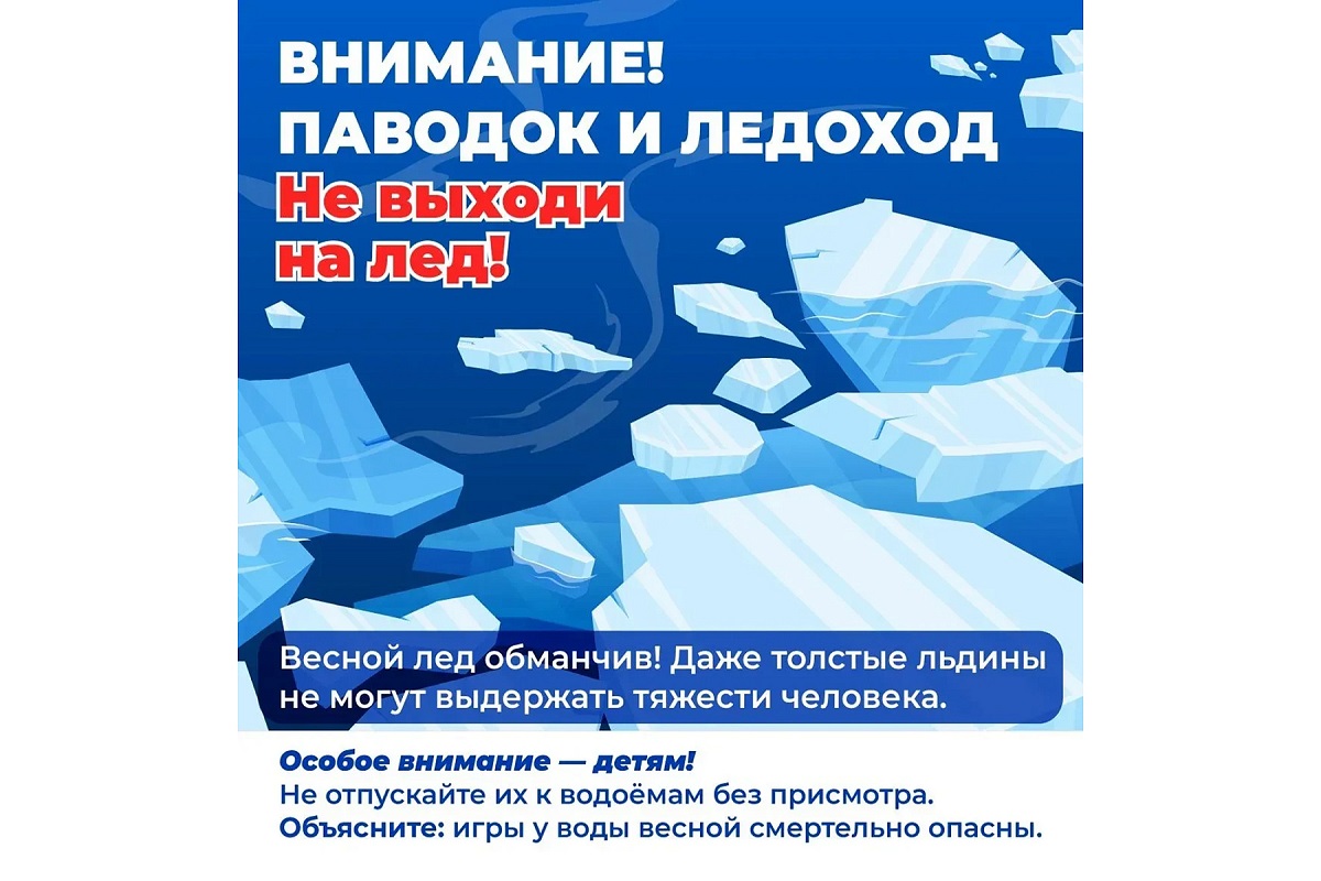 Специалисты напоминают: весенний лед опаснее первого льда – он не издает предупреждающего треска, а сразу рушится под шагающим человеком. Во избежание происшествий и несчастных случаев спасатели рекомендуют соблюдать основные правила поведения: не переходить водоемы с целью сокращения пути, воздержаться от рыбалки на тонком льду, не допускать скопления людей и грузов в одном месте на поверхности водоема, исключить случаи пребывания на льду в плохую погоду, а также ночью.