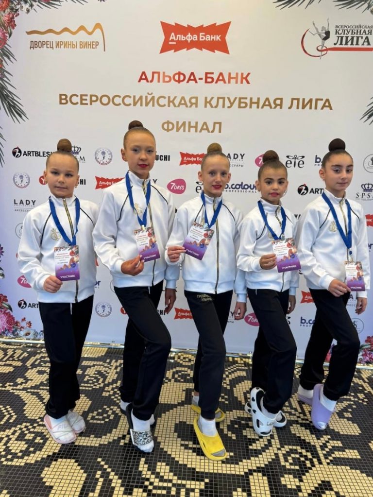 Бронза — Бойкова Вероника, Гребенкина Ульяна, Немилова Мария. Шестое место в личной программе с обручем заняла Муравьева Мария. Очень гордимся нашими девочками Хасановой Ариной и Горбуновой Мариной!